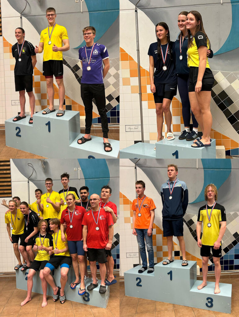 Ook als team waren de heren onverslaanbaar: beide estafettes werden gewonnen. Tijdens de 4×100 meter wisselslag zwom Joas Norden een indrukwekkende 1.15.93 op de schoolslag – een tijd die normaal gesproken een A-limiet zou zijn. Wat een prestatie!